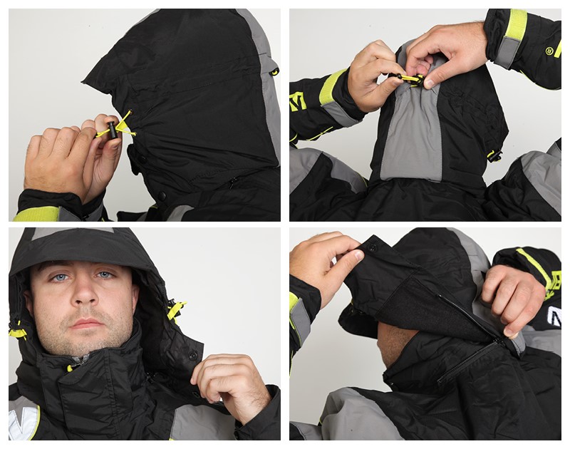 Объемный капюшон крепится с помощью застежки-молнии, имеет двухуровневую регулировку, что позволяет его точно подогнать по размеру.