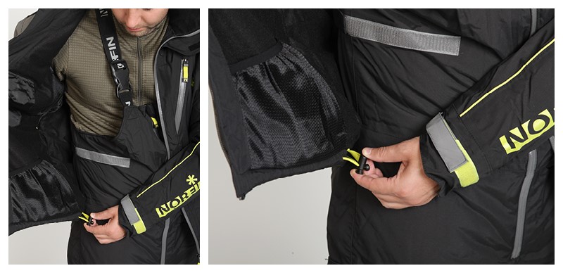 Нижняя часть рукавов снабжена регулировкой объема – застежками Velcro (на липучке). Эластичные манжеты обеспечивают дополнительную защиту от холода и ветра.