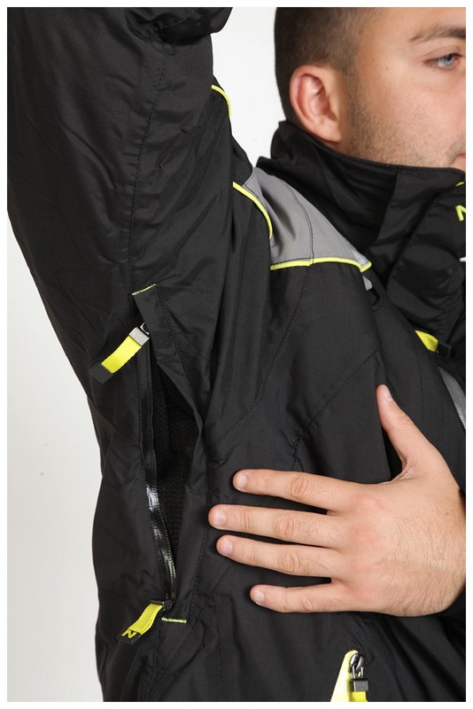 При интенсивной физической нагрузке, а также в теплую погоду, можно воспользоваться дополнительными клапанами вентиляции. Они расположены под рукавами и открываются с помощью застежек-молний.
