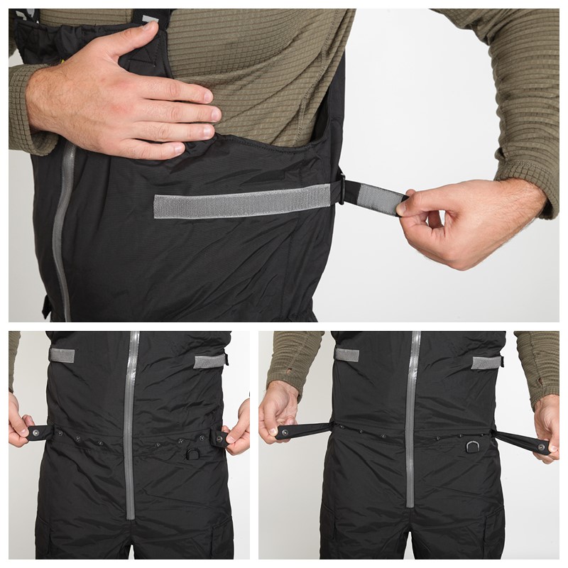 Объем нижний части штанов регулируется с помощью текстильных застежек Velcro (на липучке).